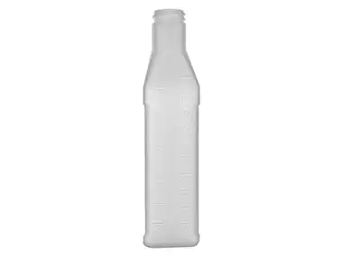 16 oz., 28/400 Acabado, White, Botella, HDPE, Tipo Carafe, Cuello Anillado, Panel Etiqueta