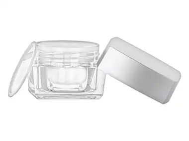 15 mL, 50mm Finish, Clear/White, Sets, Jars/Caps, Acrylic, Square, White Inner